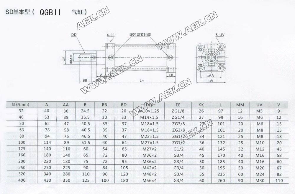 QGBII气缸,QGBII-K气缸带磁,QGBII200气缸,QGBII-KF带阀气缸
