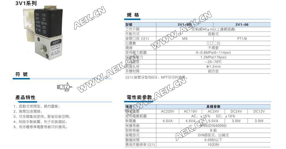 AEK电磁阀,3V1-06电磁阀, 2位3通电磁阀