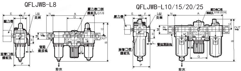 气源处理,三联件,QFLJWB气源处理件QFLJWB-L8、QFLJWB-L10、QFLJWB-L15、QFLJWB-L20、QFLJWB-L25、