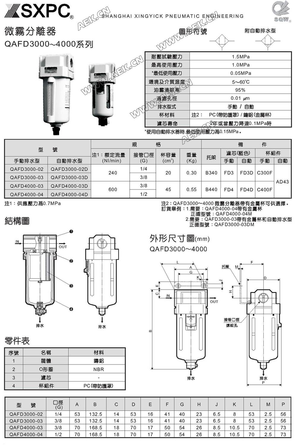 SQW 自动排水 过滤器 QAF2000,QAF3000,QAF4000,QAF5000