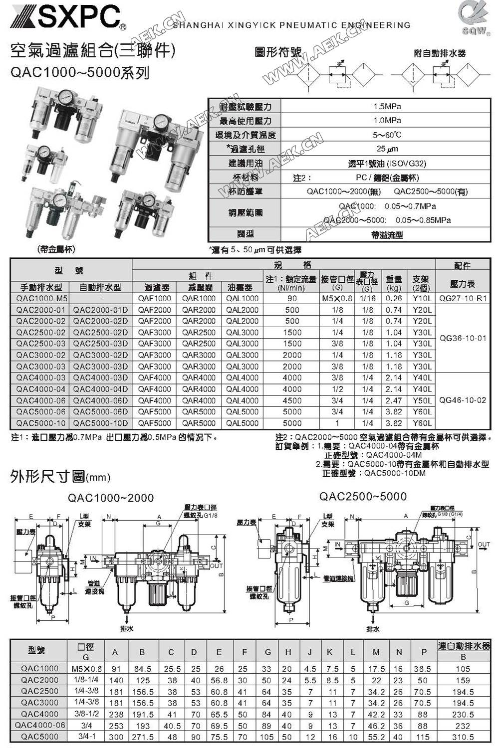 SQW 手动排水 三联件 QAC2000,QAC2500,QAC3000,QAC4000,QAC5000