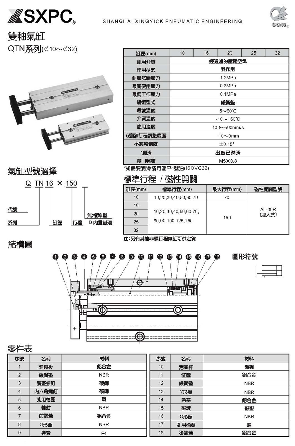 SQW气缸,QTN双轴气缸,QTN10气缸,SXPC气缸