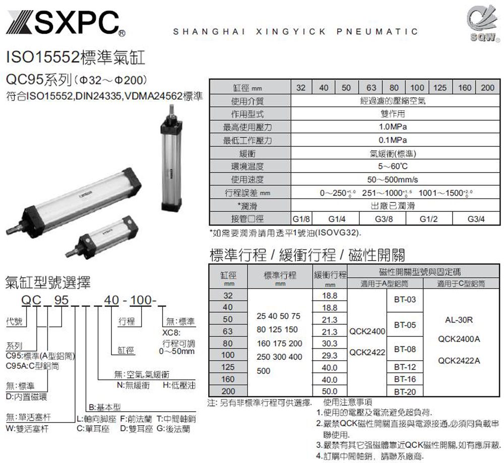 QC95气缸,ISO6431气缸,QC95B125*100气缸,DIN24335标准气缸