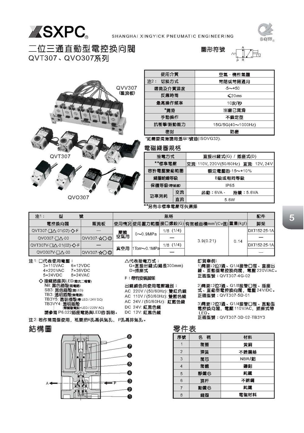 SQW电磁阀,QVT307-02,QVO307,QVT307电磁阀 QVT307-4D-02 QVT307-5D-02 QVT307-4G-02 QVT307-5G-02