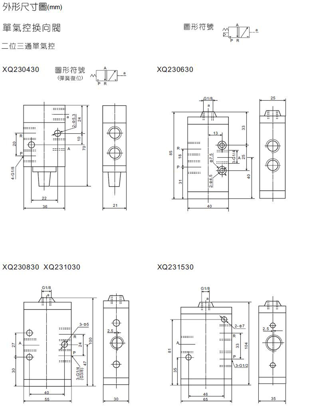 二位三通气控阀,XQ230430,XQ230630,XQ230830,XQ231030,XQ231530 XQ气控阀,二位三通气控阀