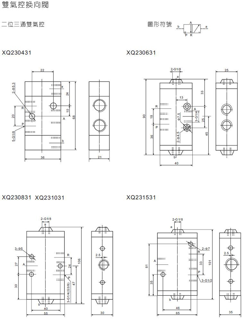 二位三通气控阀,二位三通双气控阀XQ230431,XQ230631,XQ230831,XQ231031,XQ231531