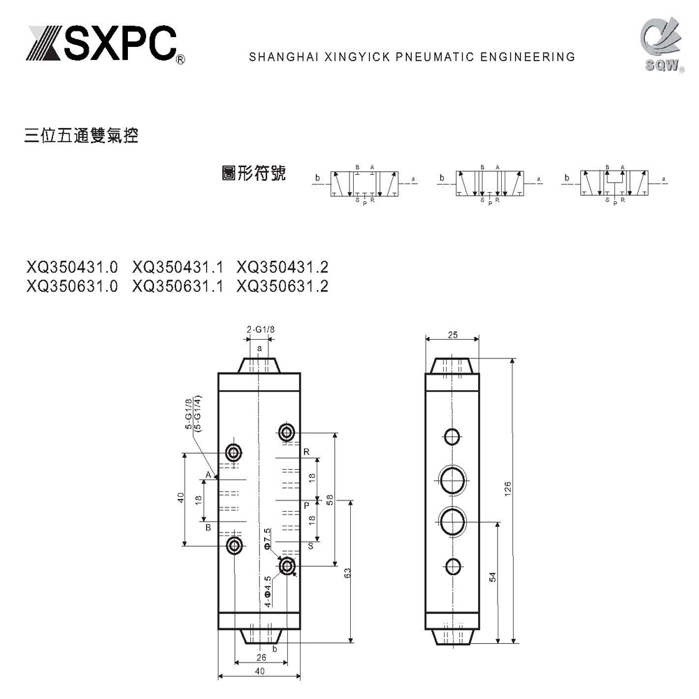 三位五通气控阀XQ350431,XQ350631,XQ351031,XQ351531