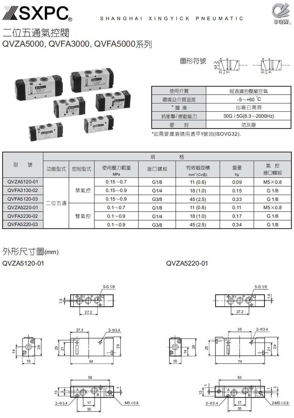 QVFA3430-02,QVFA3530-02,QVFA5120-03,QVFA5220-03,QVFA5320-03,QVFA5420-03,QVFA5520-03,二位五通单气控阀,