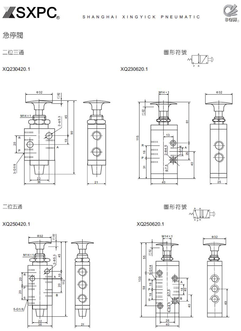 按钮式人控阀 XQ230420.1,XQ230620.1,XQ250420.1,XQ250620.1