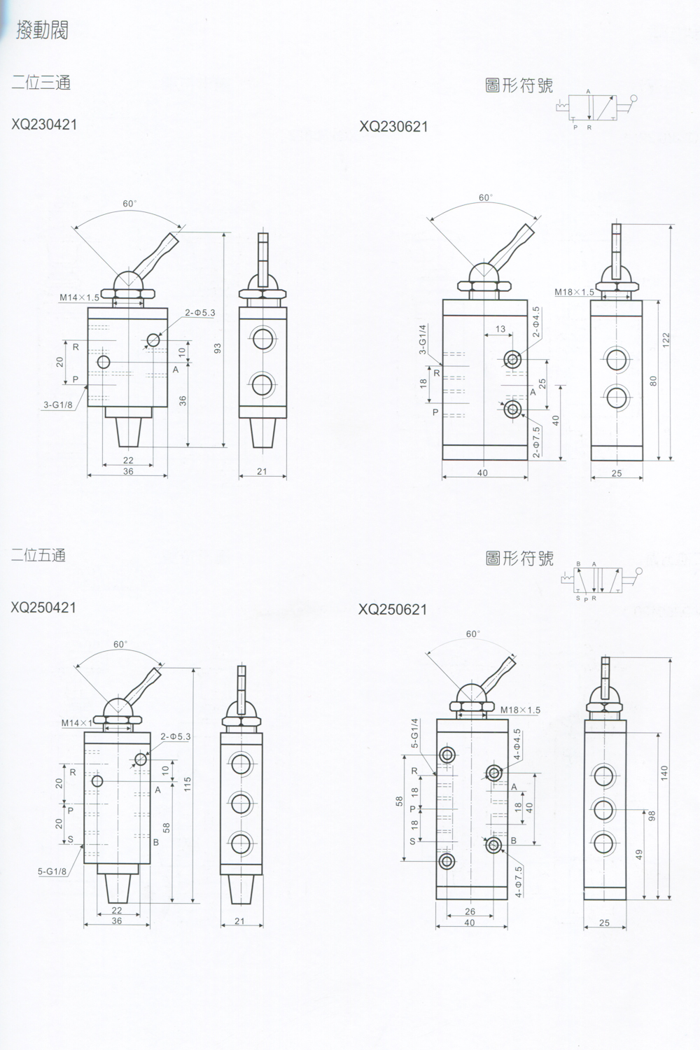二位三通拨动式人控阀XQ230421,XQ230621二位五通拨动式人控阀,XQ250421,XQ250621