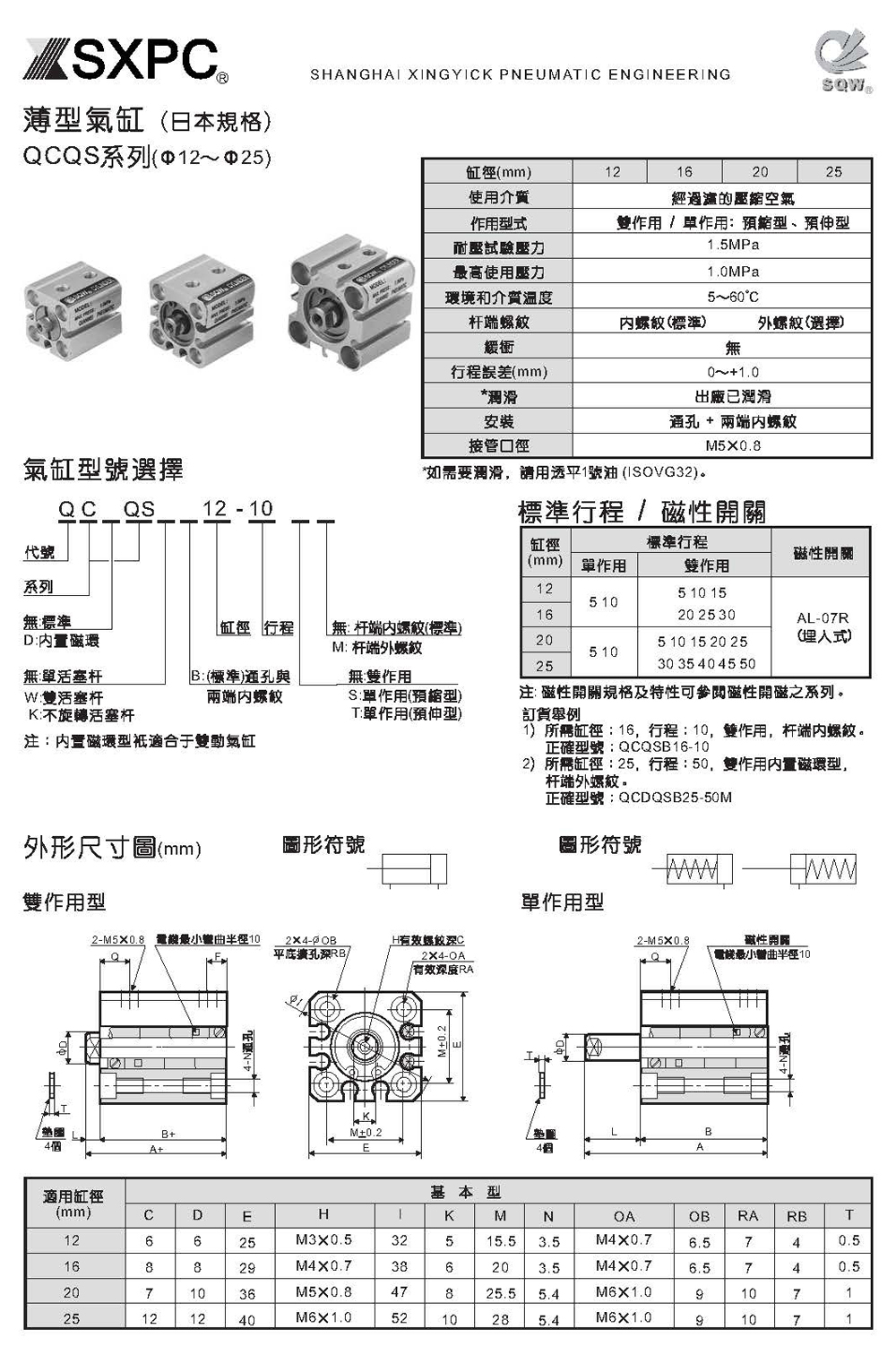 QCQSB单活塞杆双作用薄型气缸,QCQSB40气缸,QCDQSB带磁薄型气缸