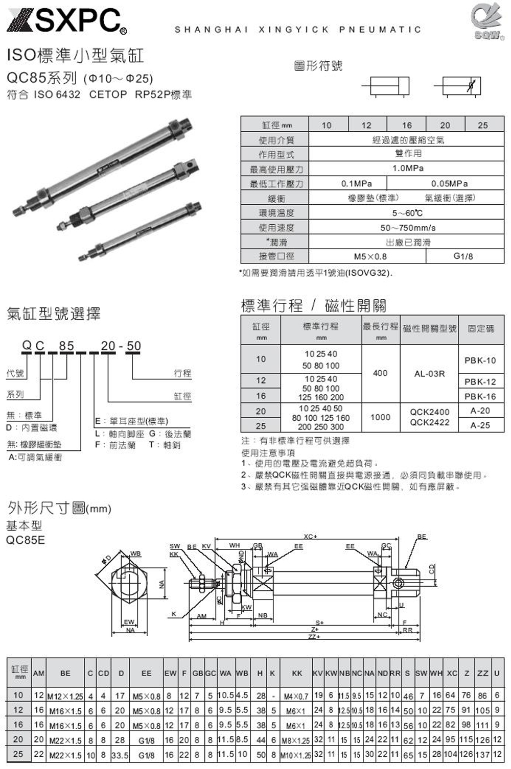 QC85E10*25迷你气缸,QCD85E10*50带磁气缸,QC85气缸