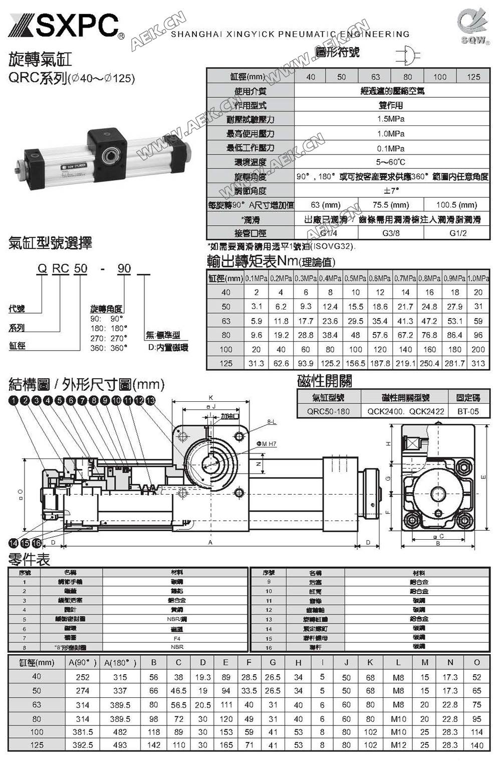 QRC旋转气缸,QRC50-90旋转气缸,QRC90度旋转气缸