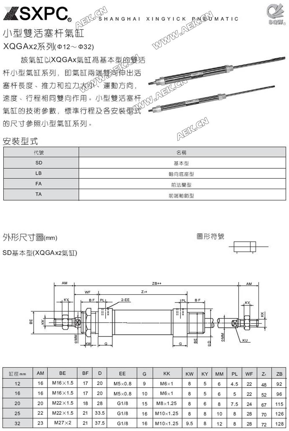 XQGAX2双活塞杆气缸,XQGAX2 32*100双活塞杆气缸