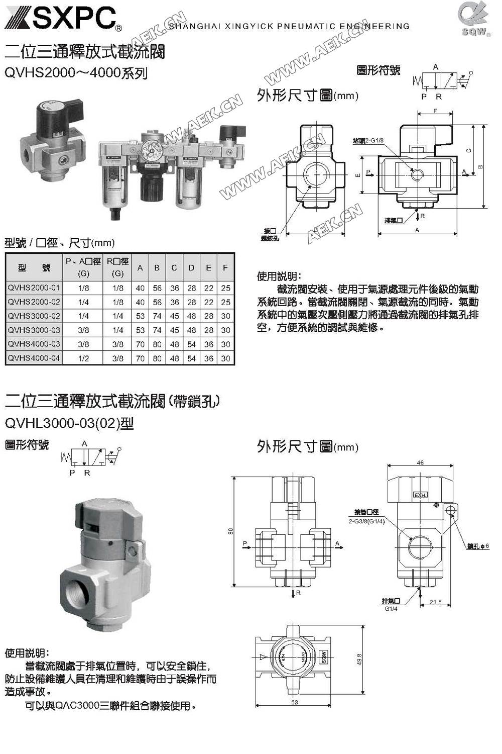 SQW释放式截流阀 QVHS2000-01,QVHS2000-02,QVHS3000-02,QVHS3000-03,QVHS4000-03,QVHS4000-04,