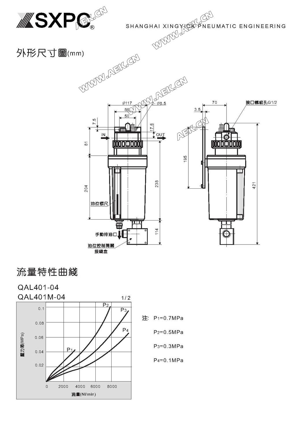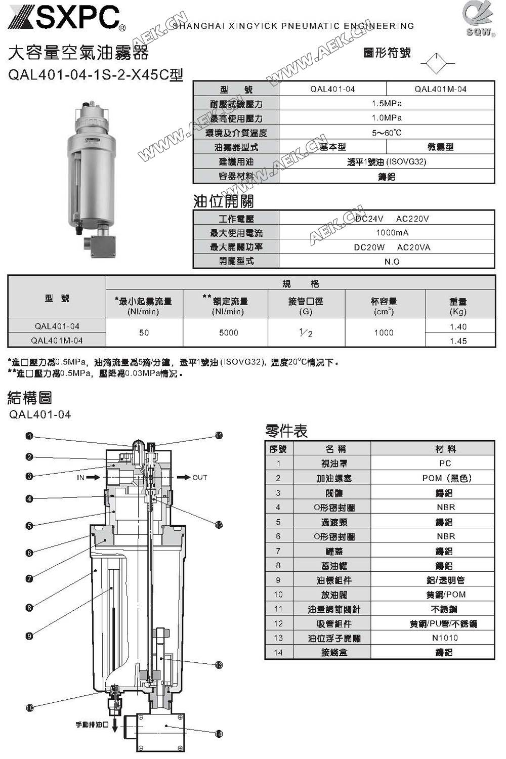 SQW 大容量空气油雾器 QAL401-4-1S-2-X45C,QAL401-04