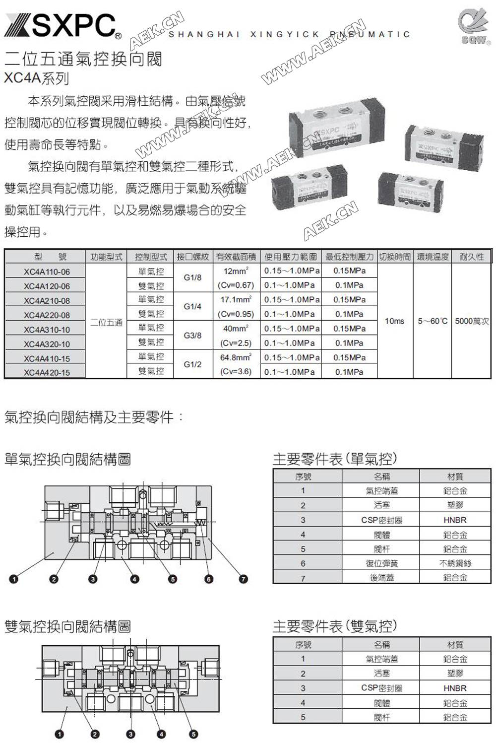 XC4A气控阀,XC4A110-06,XC4A210-08,XC4A310/410气控阀