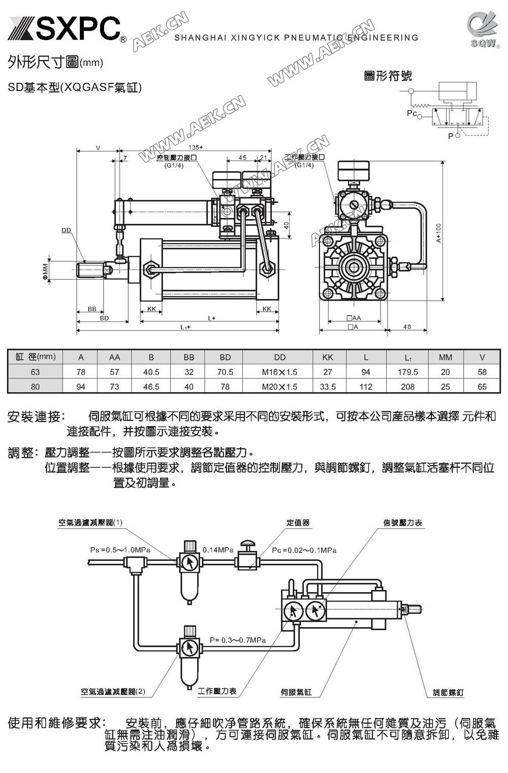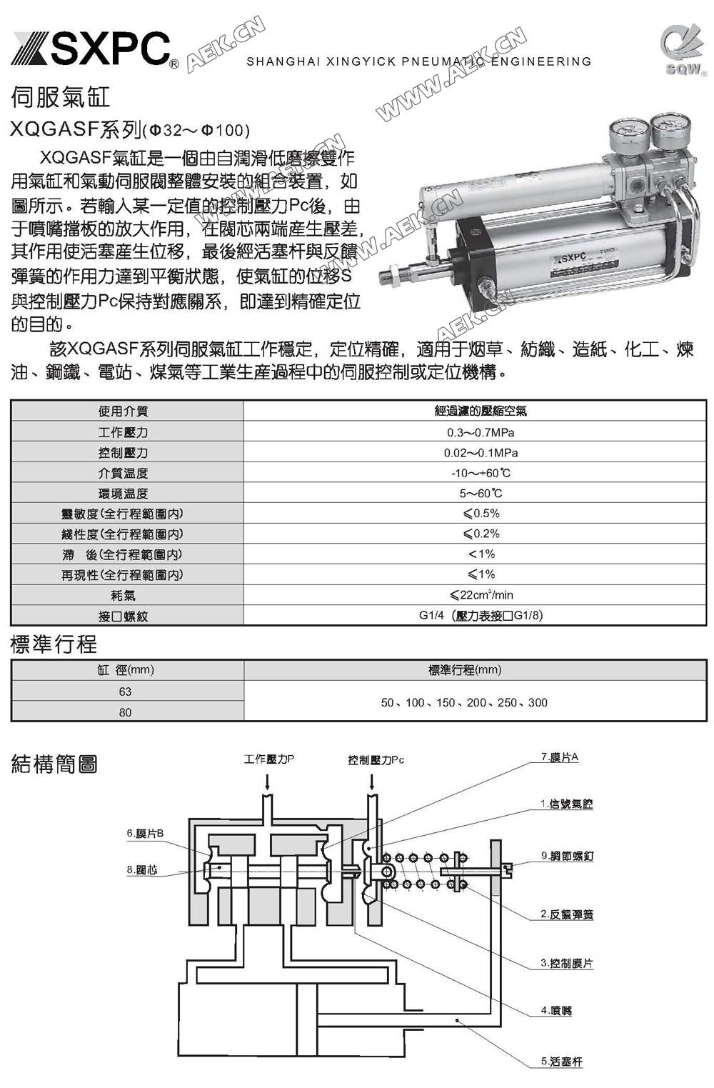 伺服气缸XQGSF63*200,XQGSF80*200,XQGSF伺服气缸