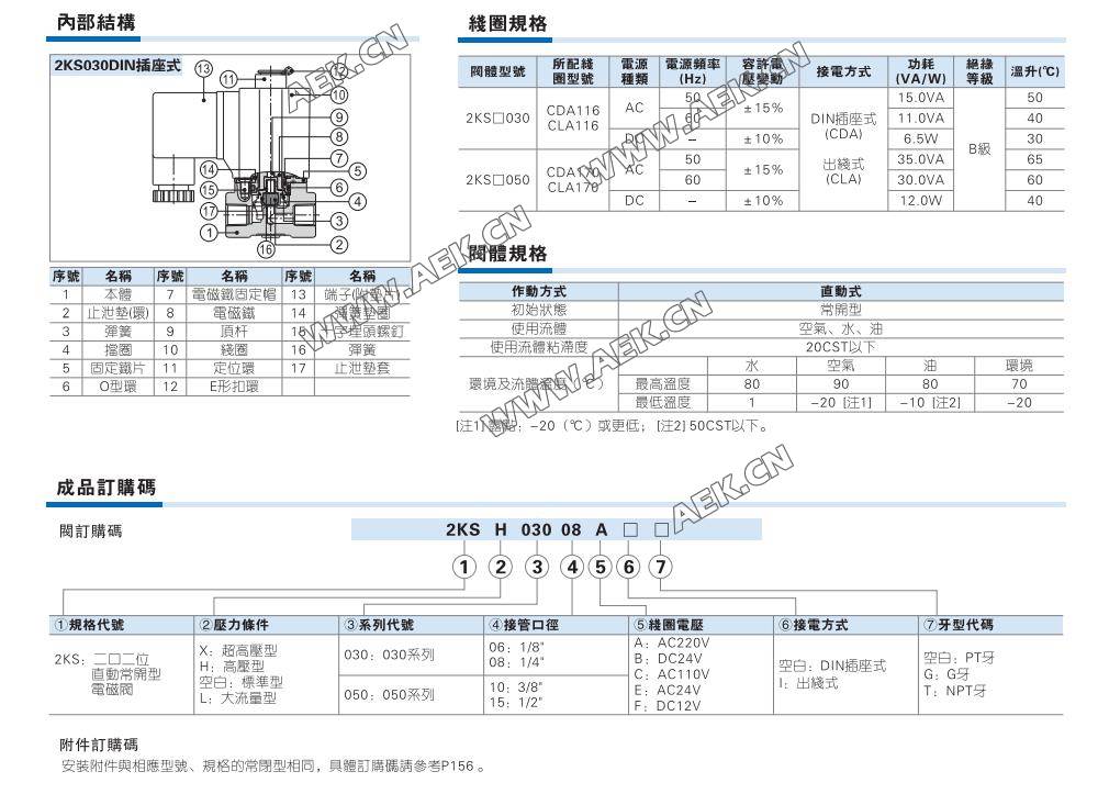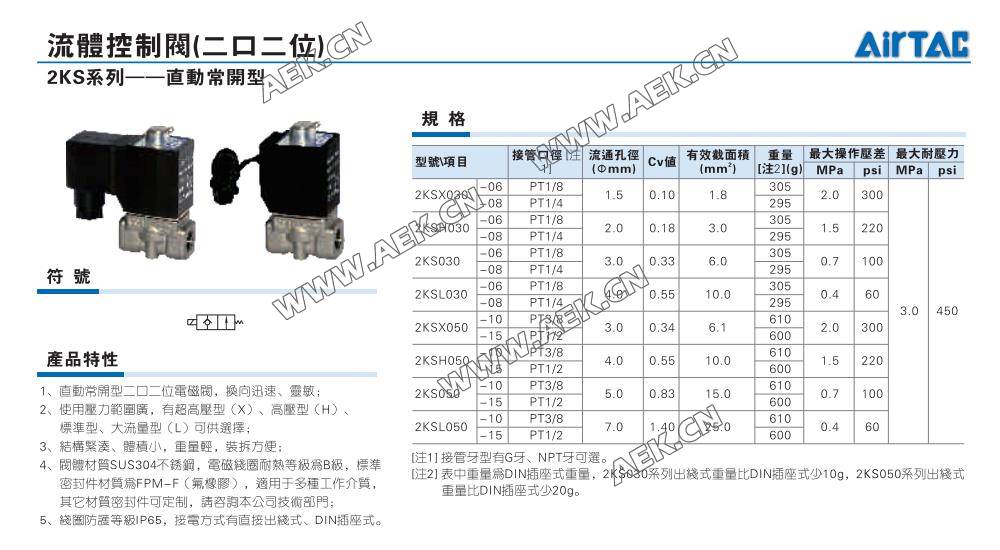 AirTAC亚德客直动常开电磁阀2KSX030/2KSX050、2KSH030/2KSH050、2KS030/2KS050、2KSL030/2KSL050