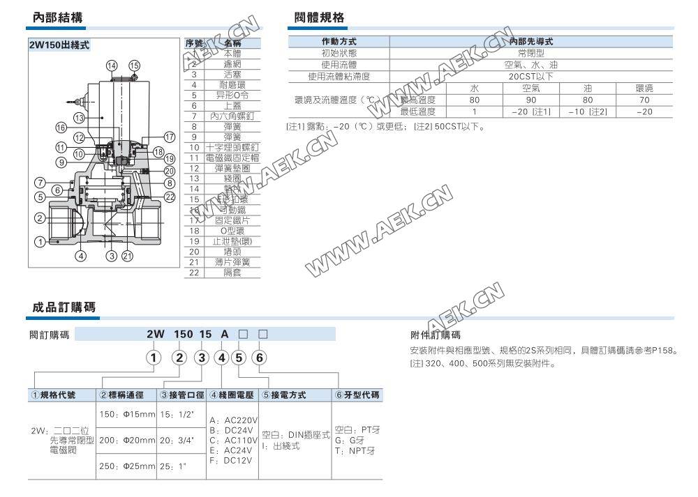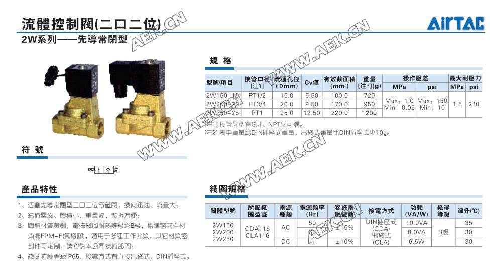 AirTAC亚德客2W系列常闭电磁阀2W150-15,2W200-20,2W250-25,先导式电磁阀