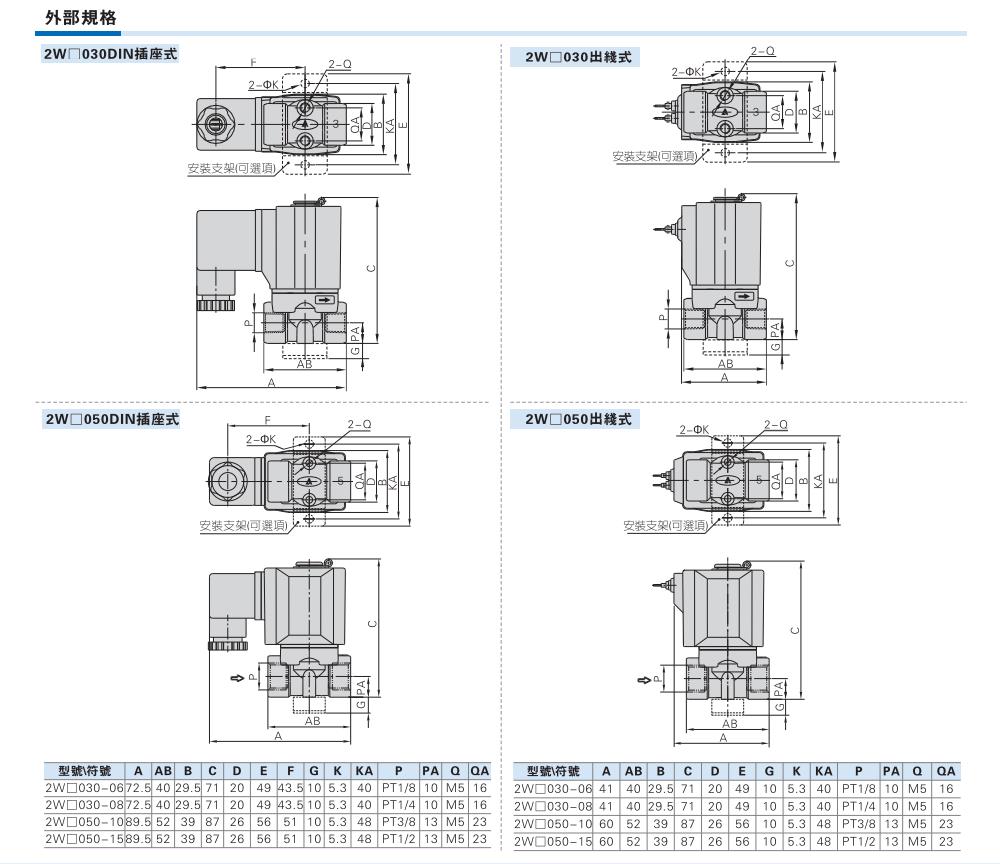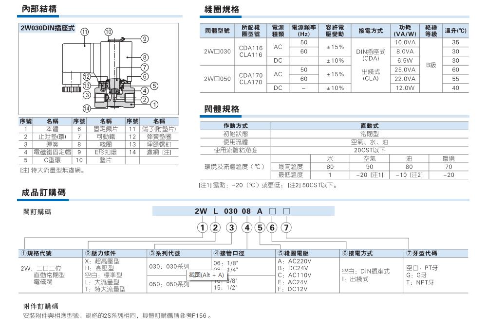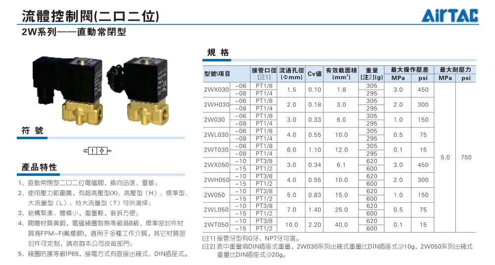 AirTAC亚德客电磁阀2W030/050,2WX030/050,2WH030/050,2WL030/050,2WT030/050直动式
