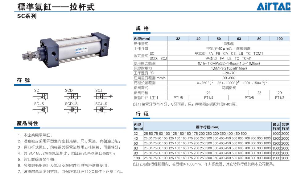 亚德客气缸,AIRTAC气缸,SC气缸,SC40*100 SC40*50