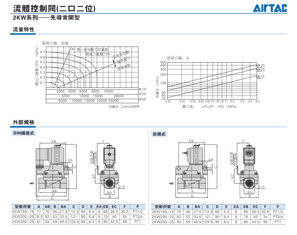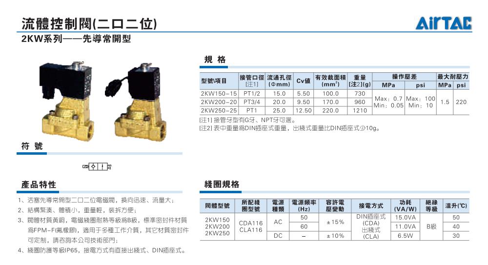 AirTAC亚德客电磁阀 2KW150-15,2KW200-20,2KW250-25 先导常开型