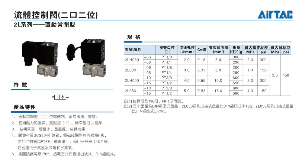 AirTAC亚德客电磁阀 2L030、2LH030、2L050、2LH050 不锈钢直动式电磁阀