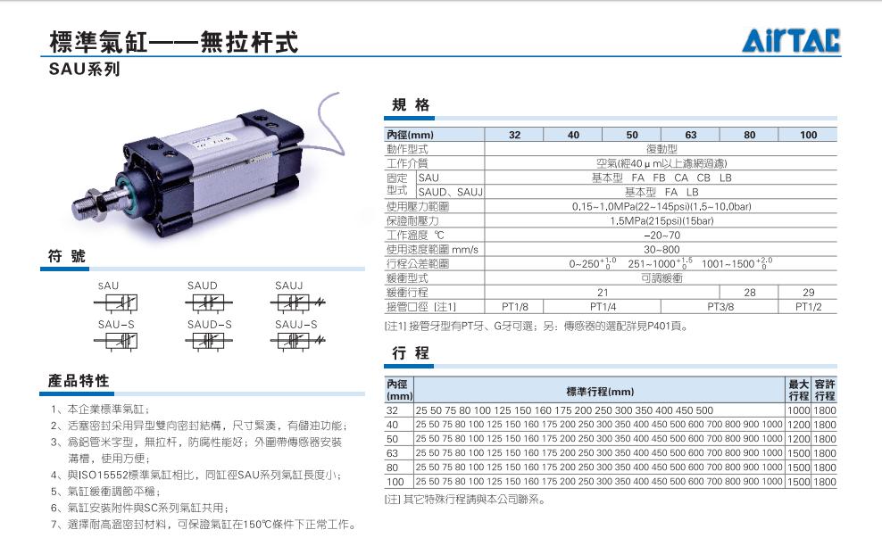 亚德客气缸,AIRTAC气缸,SU气缸,SAU气缸,SAU40*100 SAU40*50
