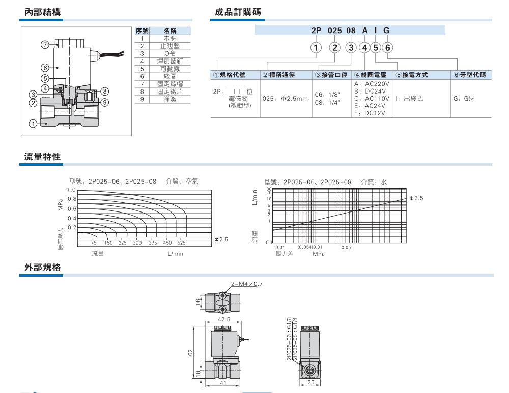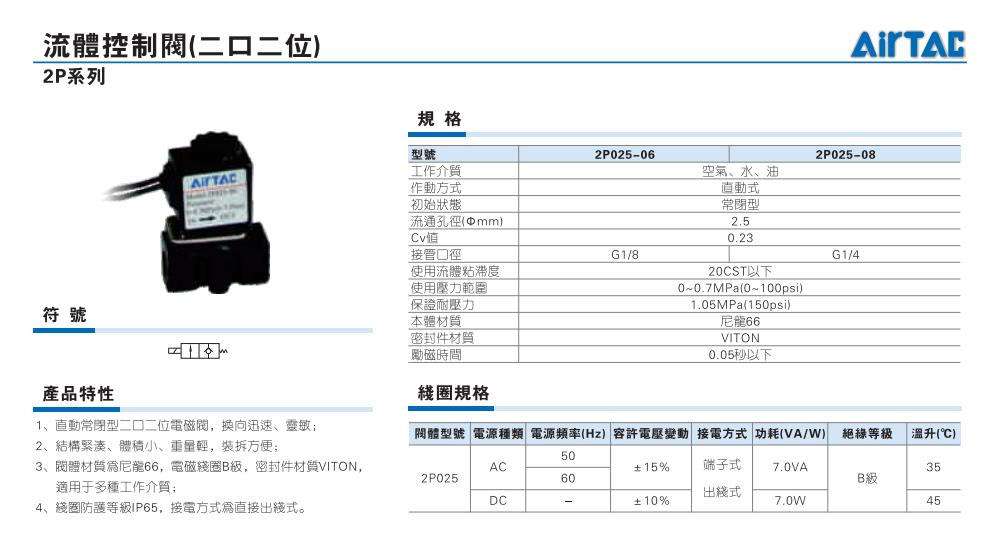 AirTAC亚德客电磁阀 2P025-06 2P025-08 流体控制阀
