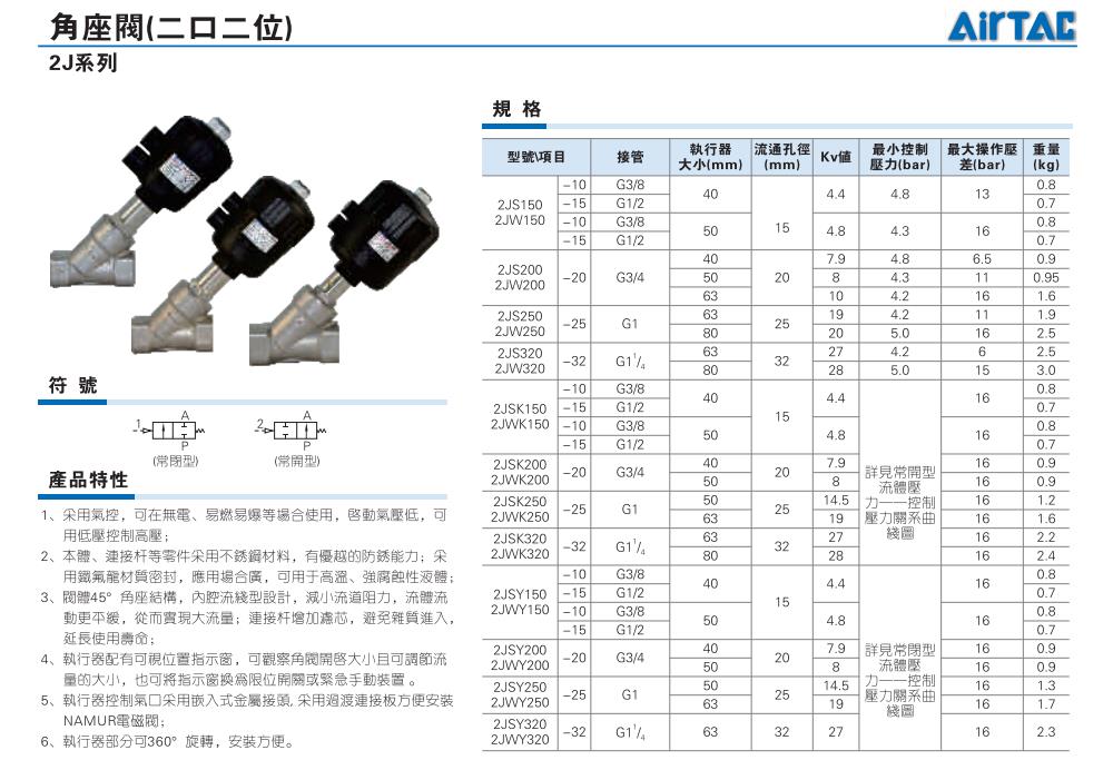 AirTAC亚德客2JS150,2JS200,2JS250,2JS320.2JW150,2JW200,2JW250,2JW320角座阀
