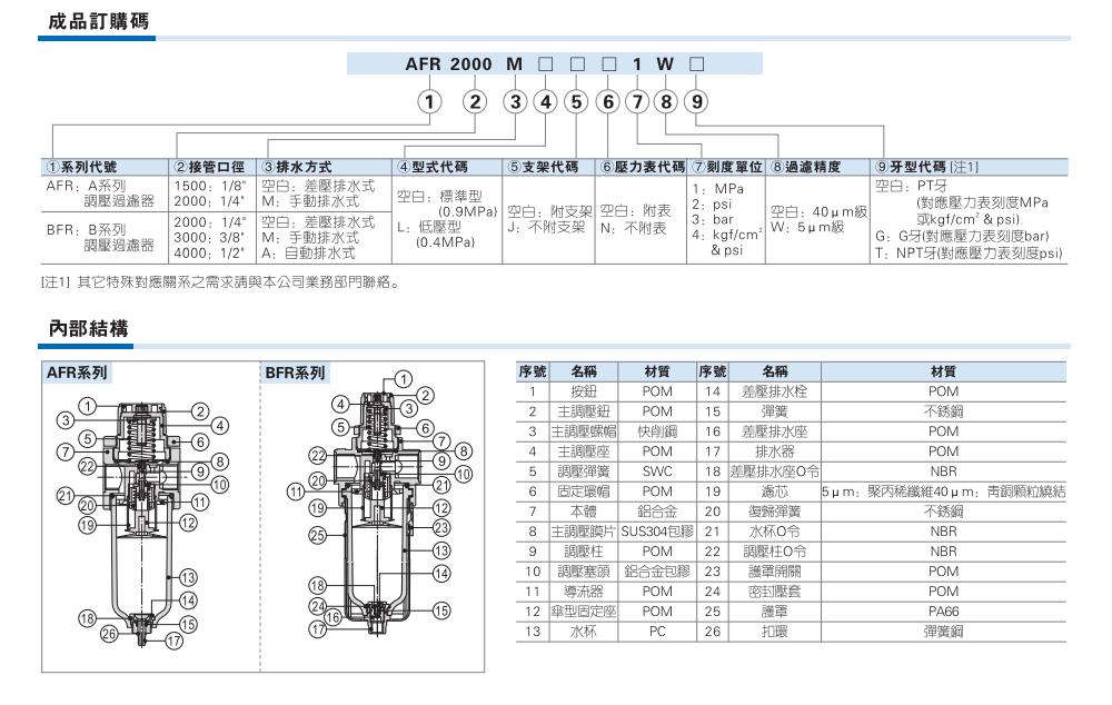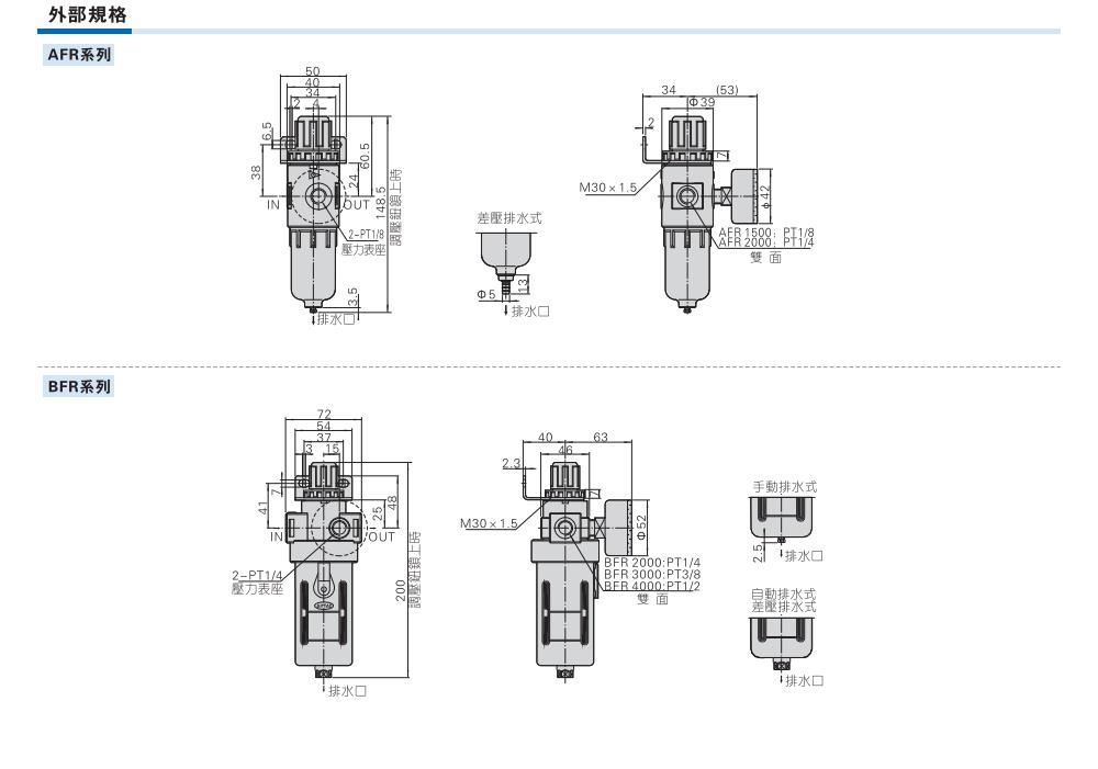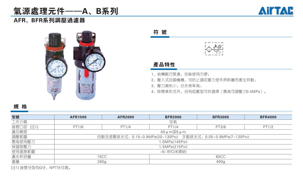 AirTAC亚德客 调压过滤器AFR1500、AFR2000、BFR2000、BFR3000、BFR4000