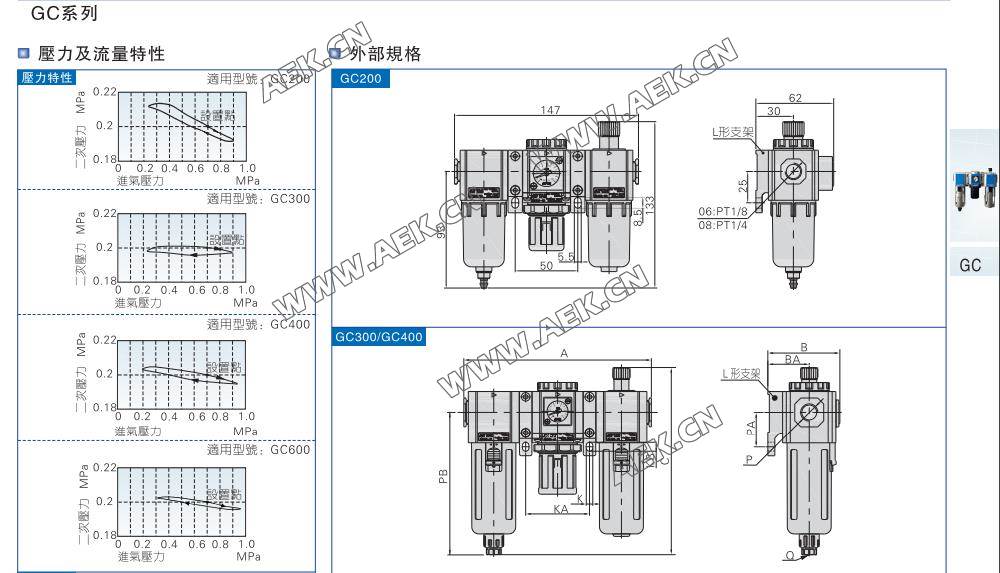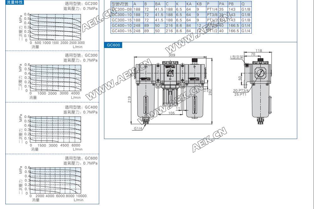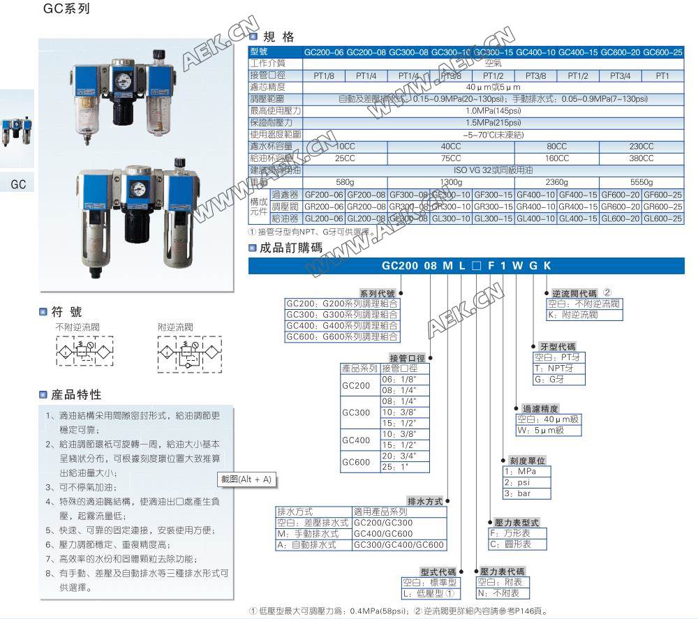 AirTAC亚德客 气源处理件 GC200、GC300、GC400、GC600三联件