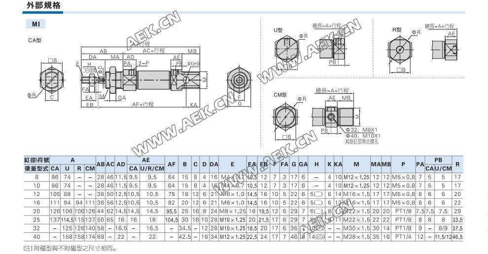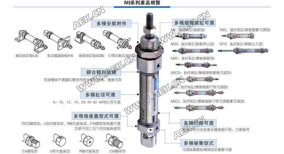 亚德客气缸,AIRTAC气缸,MI迷你气缸,MI25*100,MI25*50