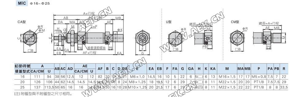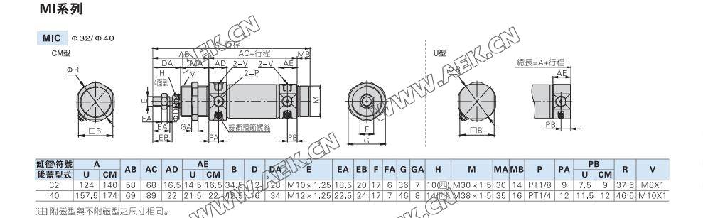 亚德客气缸,AIRTAC气缸,MIC迷你气缸,MIC25*100,MIC25*50