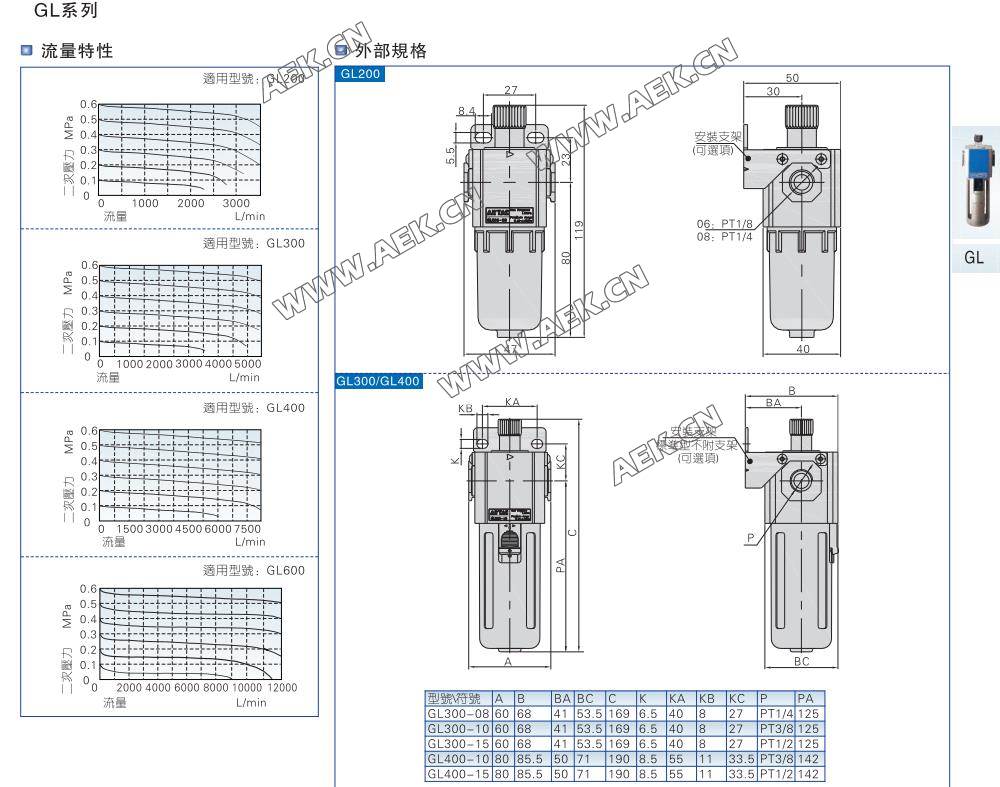 AirTAC亚德客气源处理件 GL200、GL300、GL400、GL600油雾器