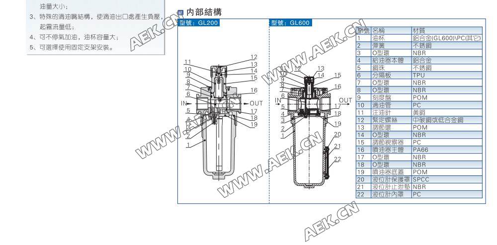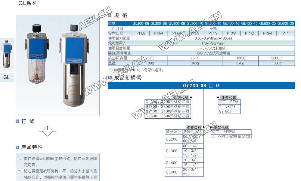 AirTAC亚德客 气源处理件 GL200、GL300、GL400、GL600油雾器