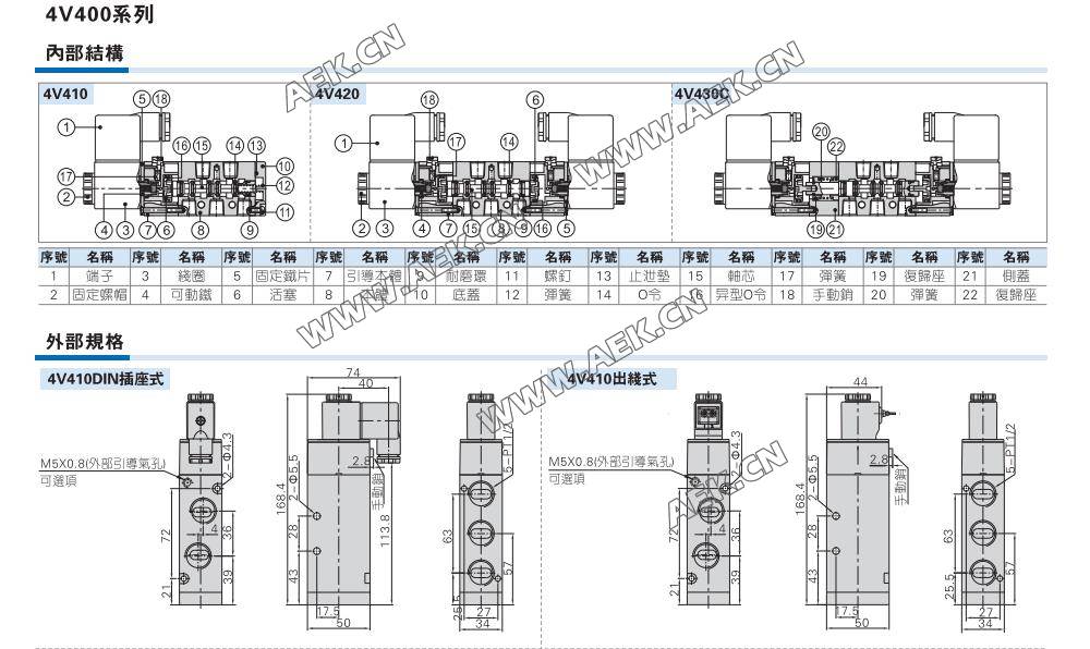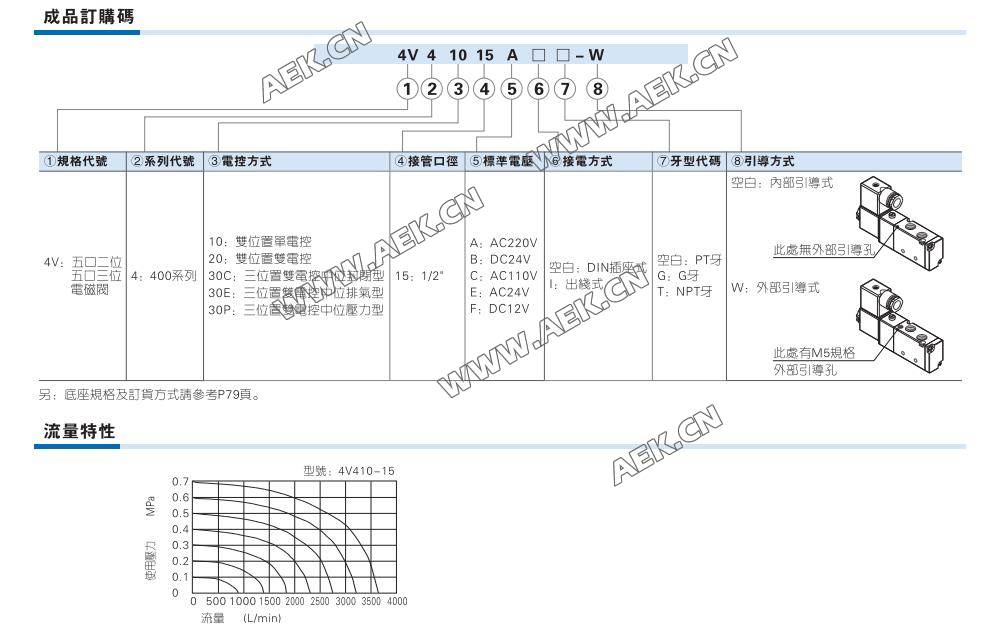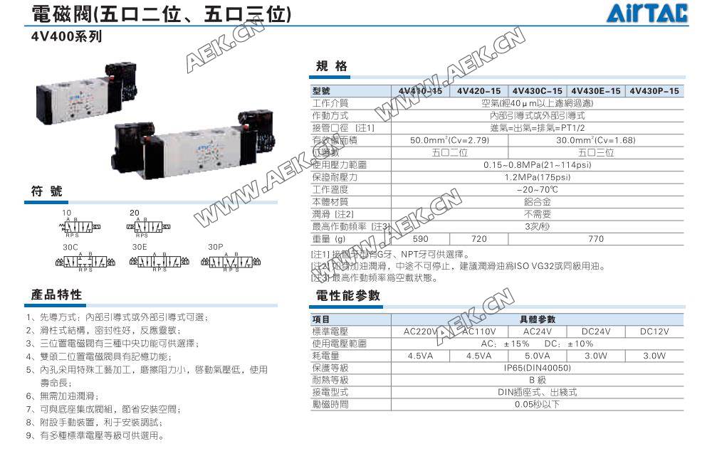 AirTAC亚德客电磁阀4V410、4V420、4V430C、4V430E、4V430P、 4V410-15、4V420