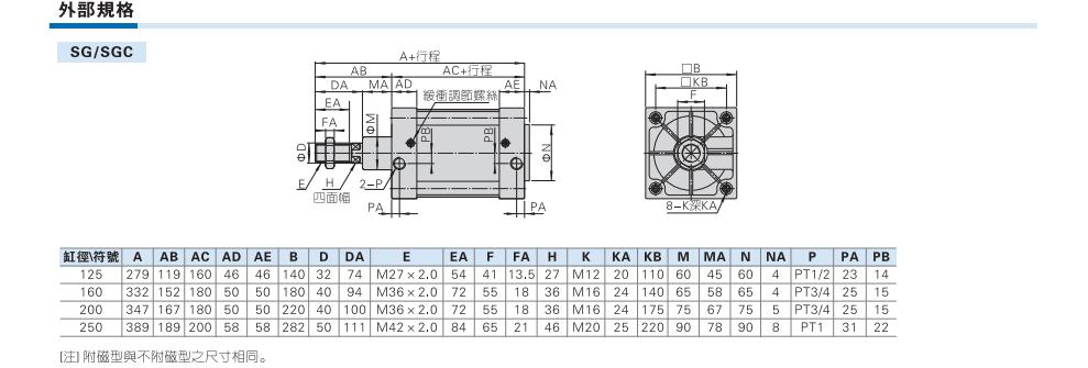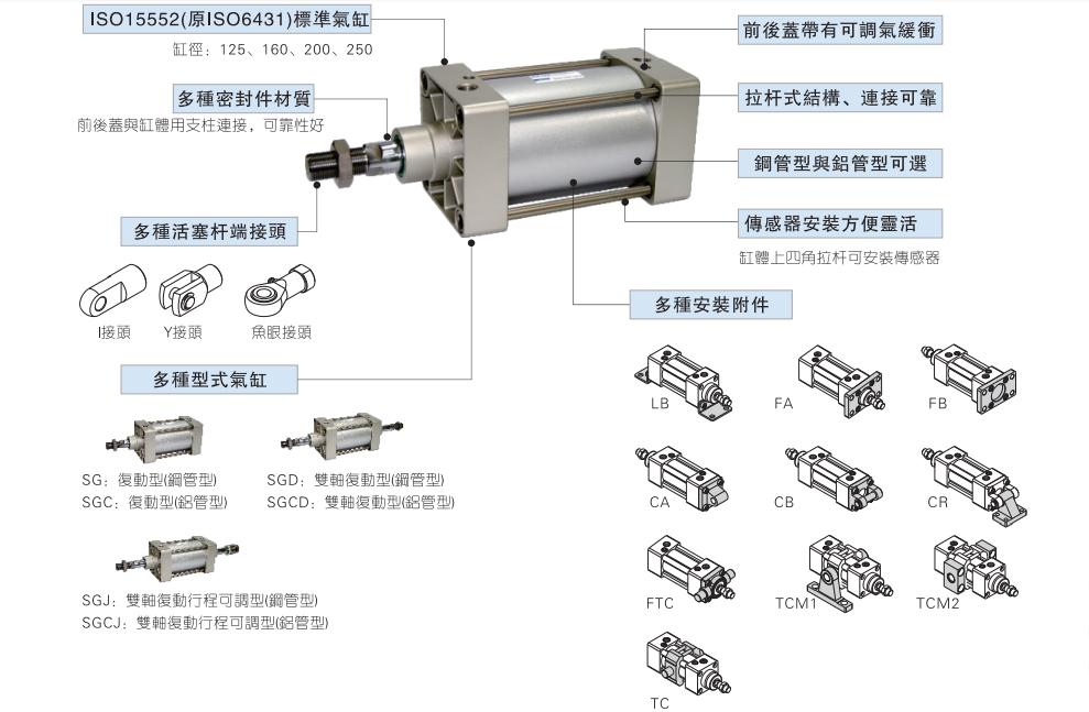 亚德客气缸,AIRTAC气缸,SG气缸,SG标准气缸,SG250*100,SG250*50