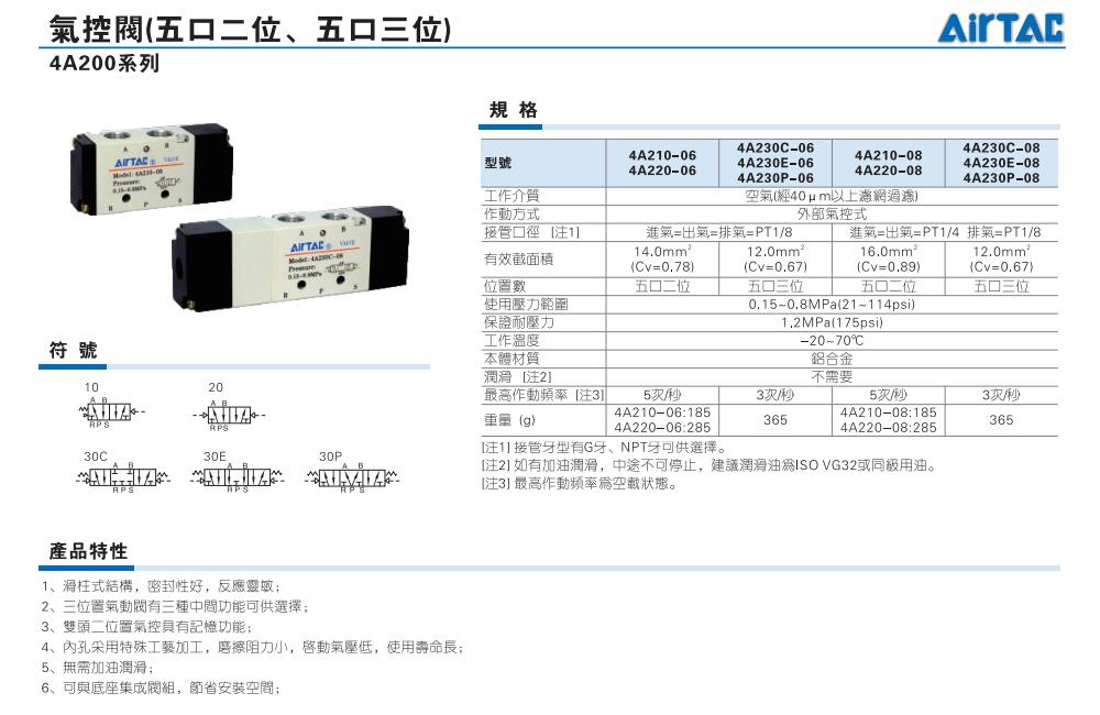 AirTAC亚德客气控阀4A210、4A220、4A230、4A230C、4A230E、4A230P、