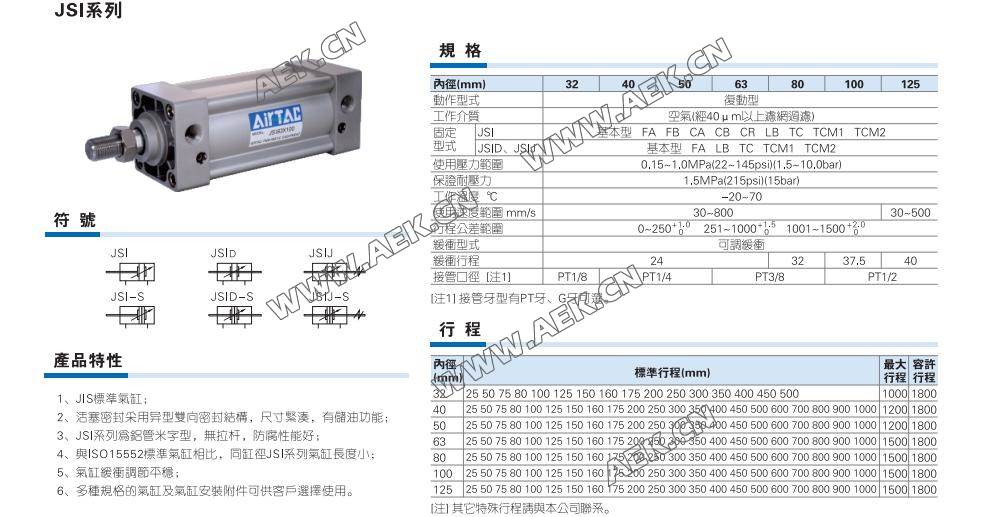 亚德客气缸,AIRTAC气缸,JSI气缸,JSI标准气缸,JSI32*100,JSI32*50