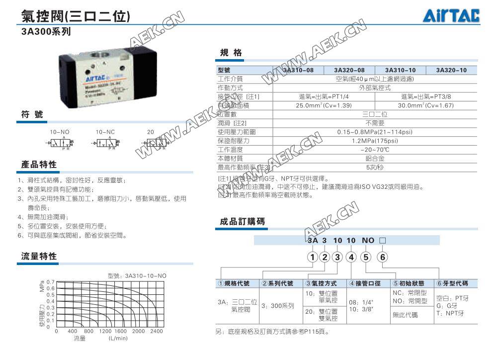 AirTAC亚德客气控阀3A310-08、3A320-08、3A310-10、3A320-10、