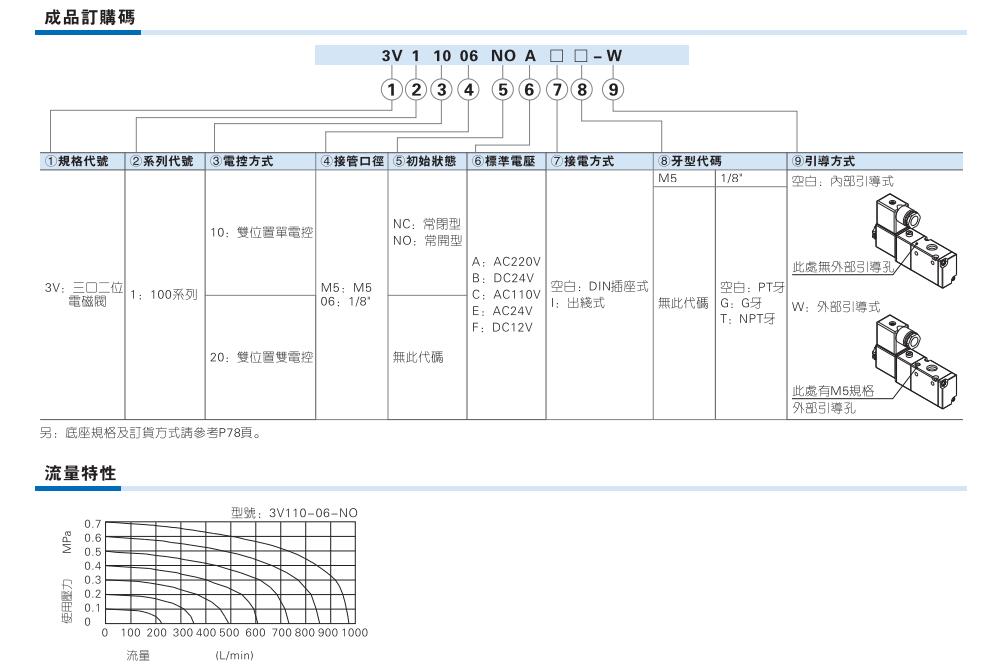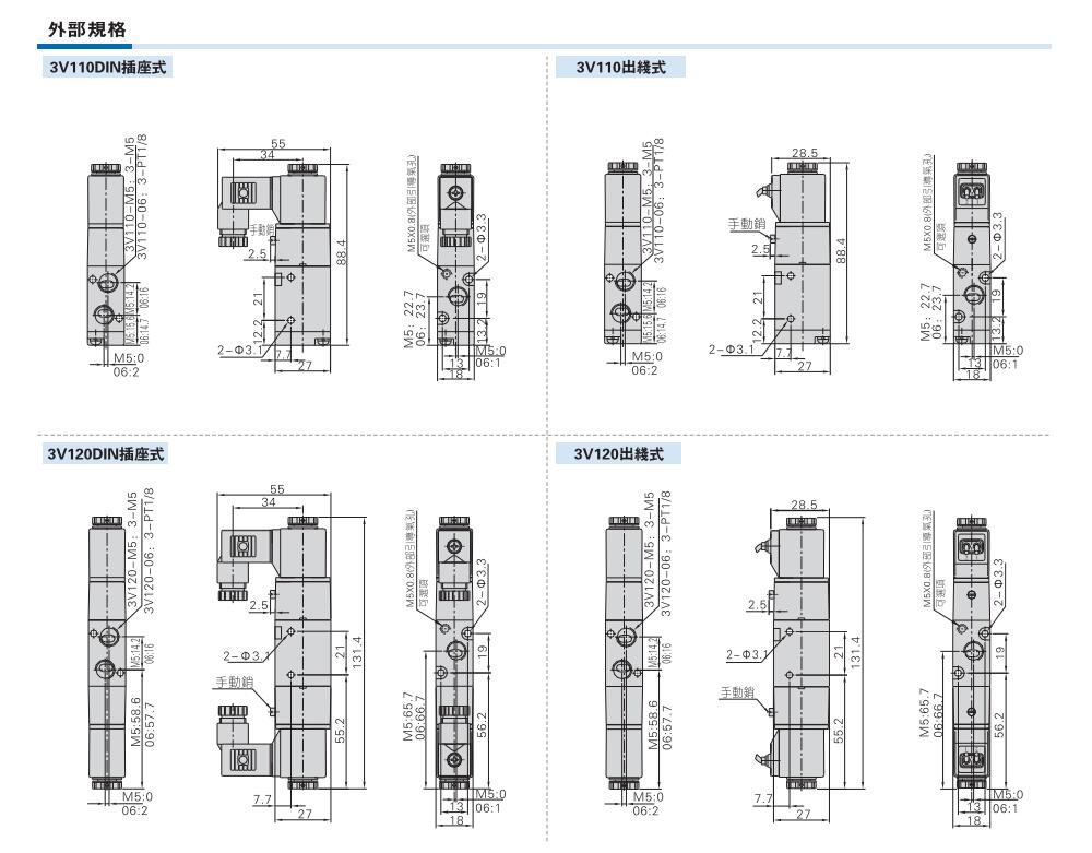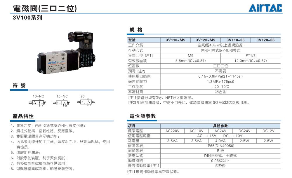 AirTAC亚德客 电磁阀 3V110-M5、3V120-M5、3V110-06、3V120-06、
