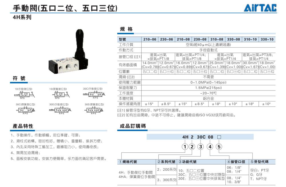 AirTAC亚德客4H210、4H230、4H310、4H320、4HA210、4HA230、4HA310、4HA330