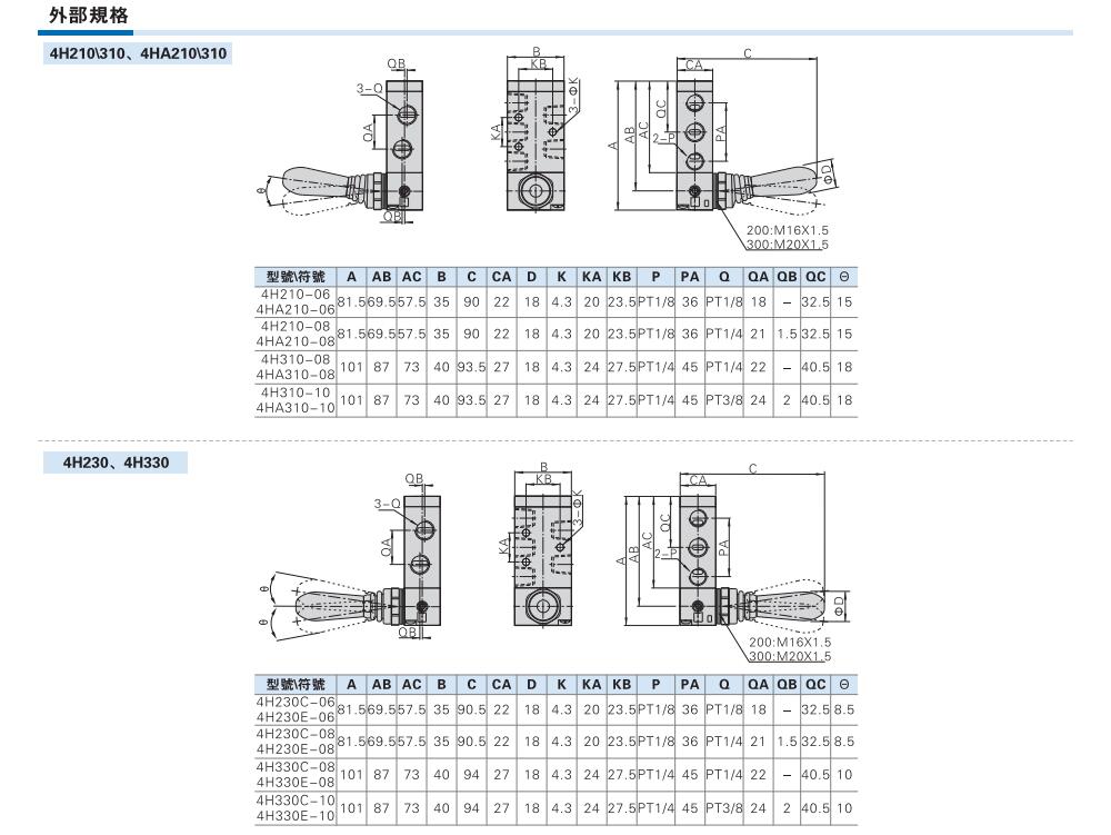 4HA210-06、4HA230-06、4HA210-08、4HA230-08、4HA310-08、4HA330-08、4HA310-10、4HA330-10、