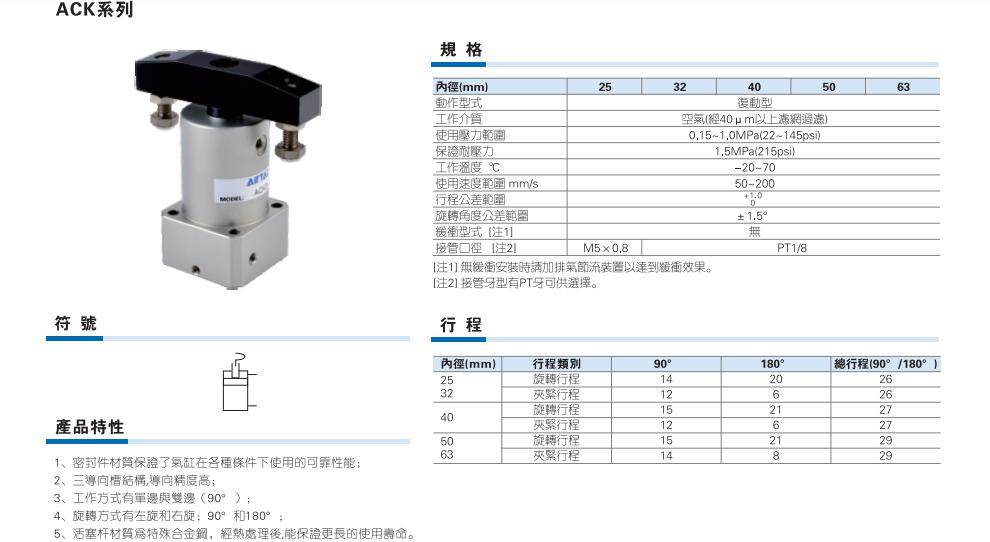 亚德客气缸,AIRTAC气缸,ACK气缸,ACK转角气缸,ACK旋转气缸