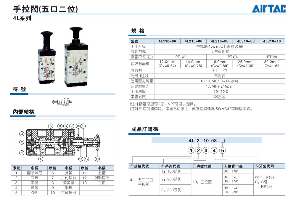 AirTAC亚德客手拉阀4L110-06、4L210-06、4L210-08、4L310-08、4L310-10