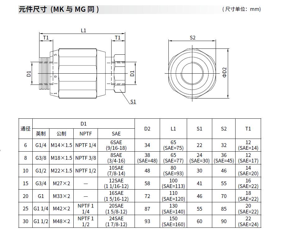 MK单向节流阀 MK6G、MK8G、MK10G、MK15G、MK20G、MK25G、MK30G