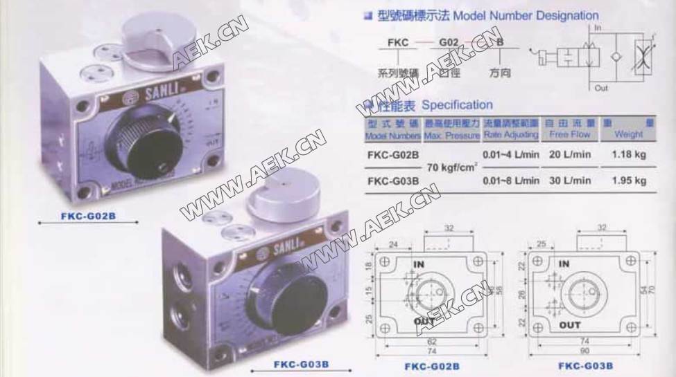 FKC流量调速阀FKC-G02B,FKC-G02A,FKC-G02BL,FKC-G02AL