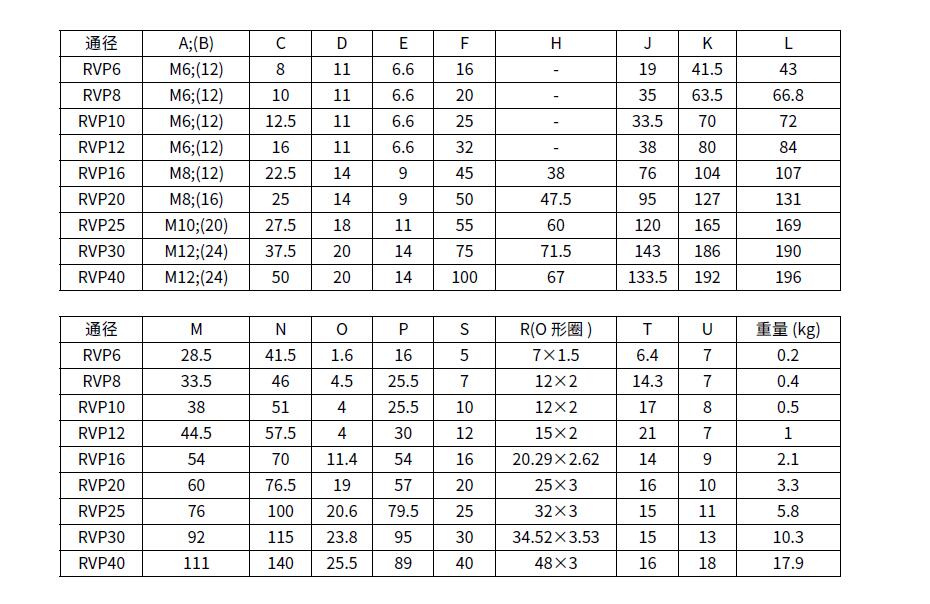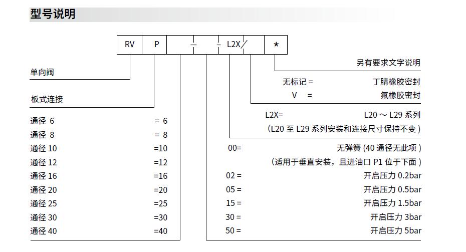 单向阀RVP6、RVP8、RVP10、RVP12、RVP16、RVP20、RVP25、RVP30